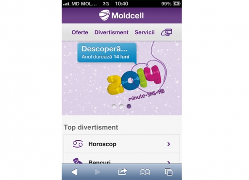 Ştim că nu-ţi poţi imagina viaţa fără Internet, de aceea, am creat versiunea mobilă a sitului www.moldcell.md, care îţi oferă acces la cele mai populare servicii şi oferte Moldcell, oriunde te-ai afla.